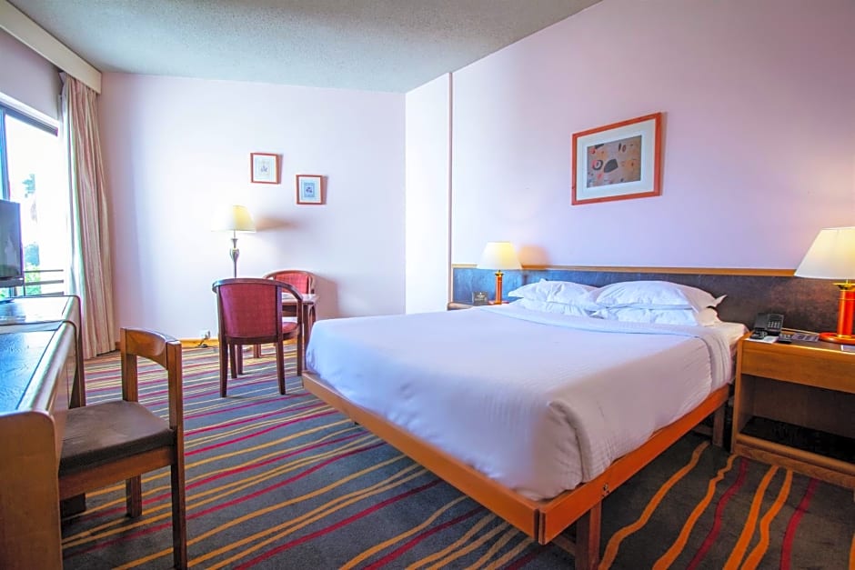 Superior B Pool View is 269 square feet and includes a king-size bed 150-183 width plus a sofa bed plus balcony, desk, satellite tv , hairdryer, tea and coffee making facilities , and safe.